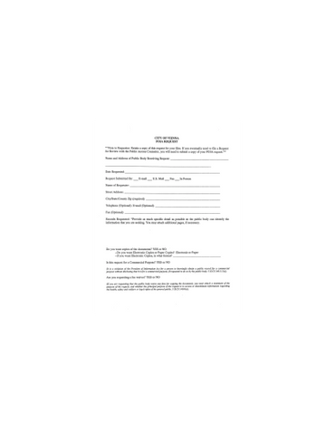 The Illinois Freedom of Information Act (5 ILCS 140/1 et. seq.) requires that all municipalities and other public agencies, such as the City of Vienna, make readily available a directory of public records maintained within an organization, the methods by which to request records, to include designating public information officials.